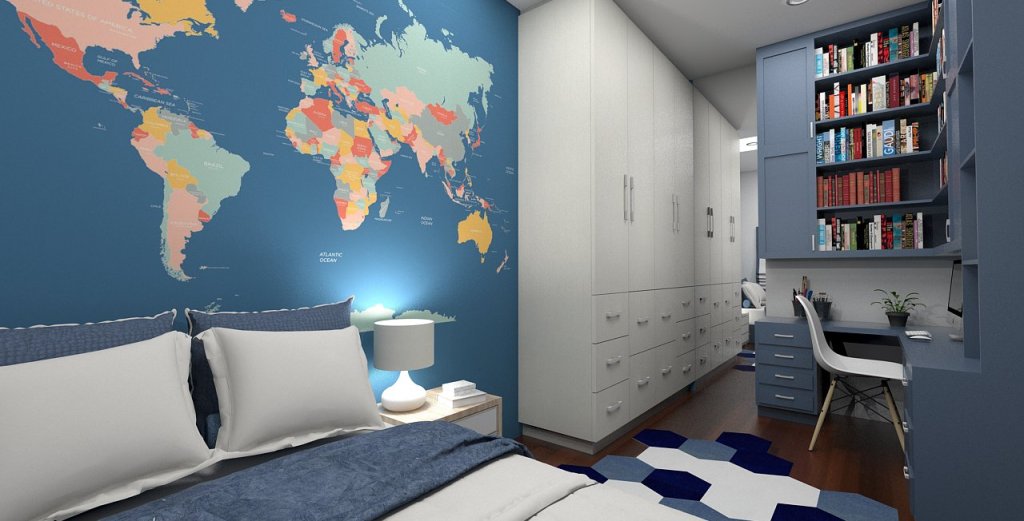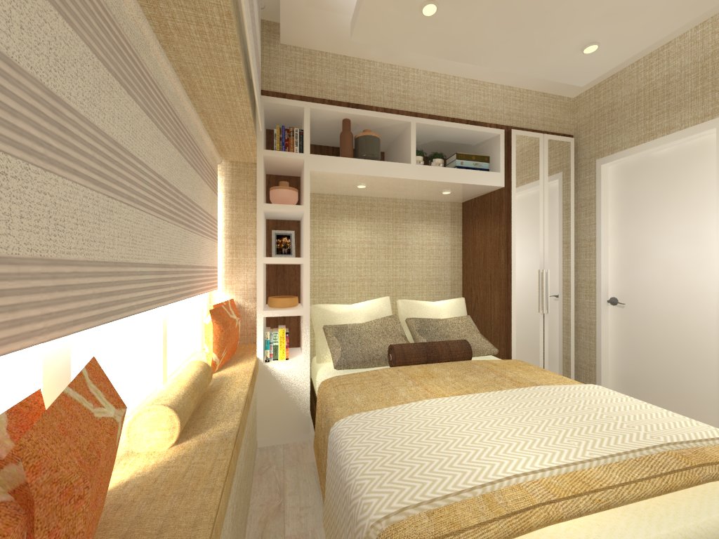 This concept centers on maximizing space in a limited footprint through vertical integration and multi-purpose furnishings, creating a space that is both practical for daily living/studying and aesthetically pleasing.