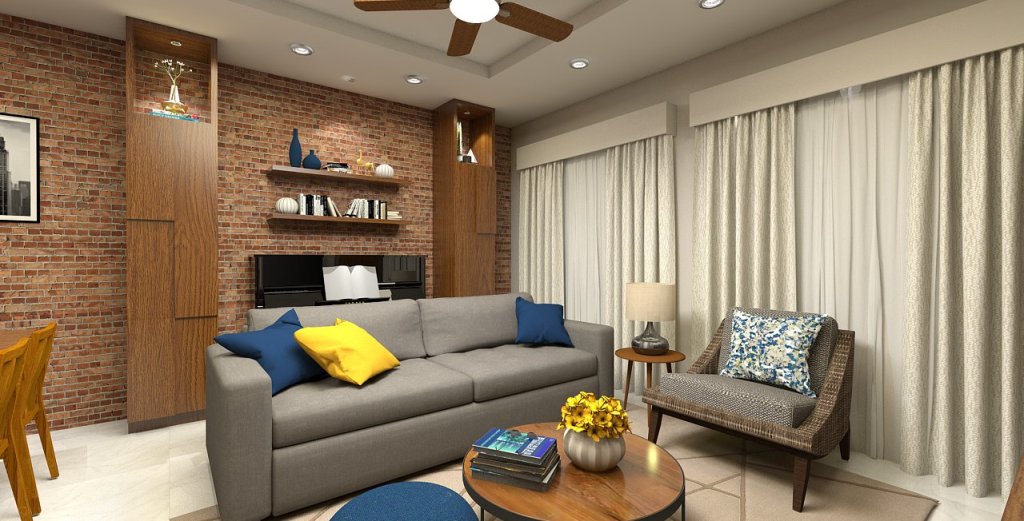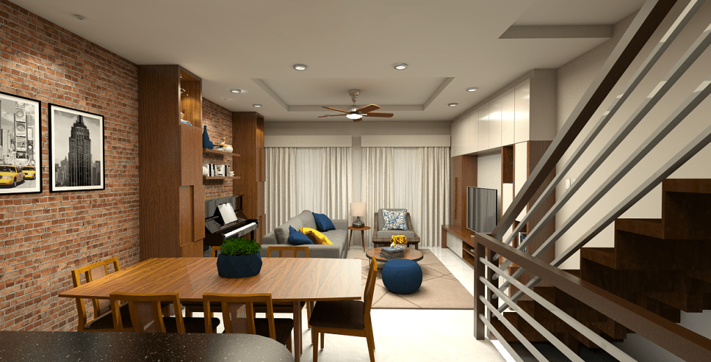 The design successfully blends contemporary elements with rich, cultural textures, creating a warm, vibrant, and highly functional studio living space.