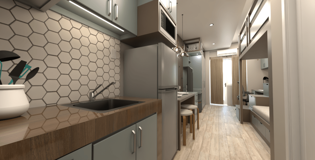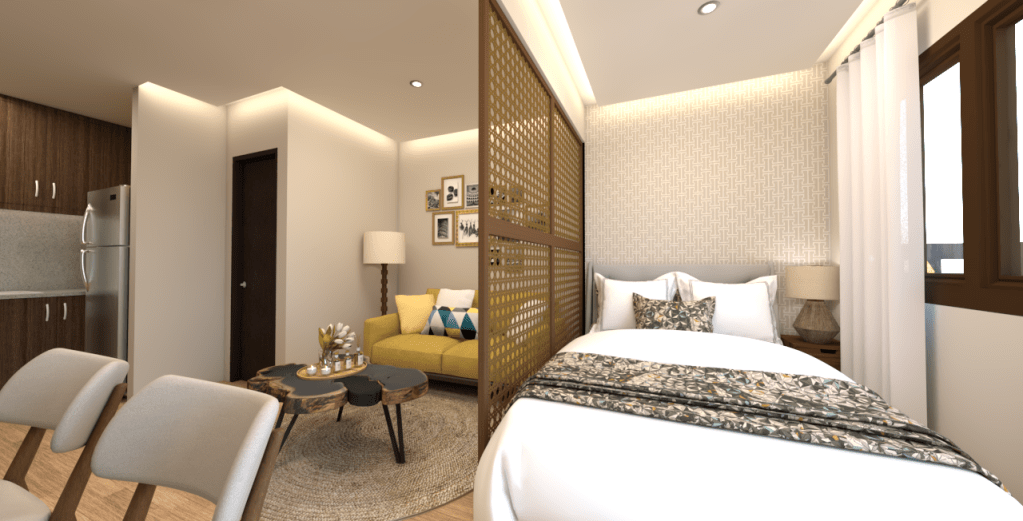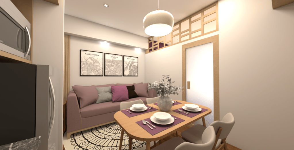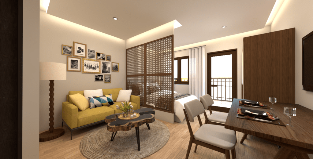It feels like a thoughtfully curated home that respects Filipino heritage through the solihiya-style divider, while maintaining a contemporary, cozy vibe through the use of natural materials, saturated colors, and clean lighting which is a perfect example of modern, compact living with a soul.